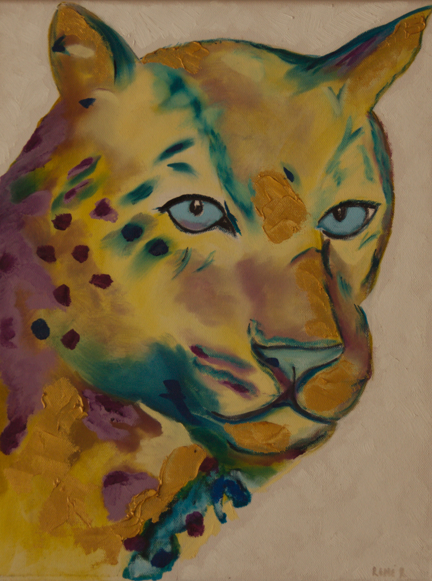 Following my lion ”portrait” I applied the same principle to my leopard, being one of my favourite animals in the wild. I used a palette of my favourite colours and added a pop or two of gold.